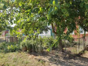 Земельный участок площадью 5,7 сотки с шикарным огородом, где посажены плодовые деревья — несколько сортов яблонь, инжир, груши, гранат, вишня, молодой персик, а также кусты ежевики и фундук.
