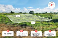 Участок площадью 7.5 соток. Два фасада Размерами 25 метров и 30 метр. Ровный, правильной прямоугольной формы.