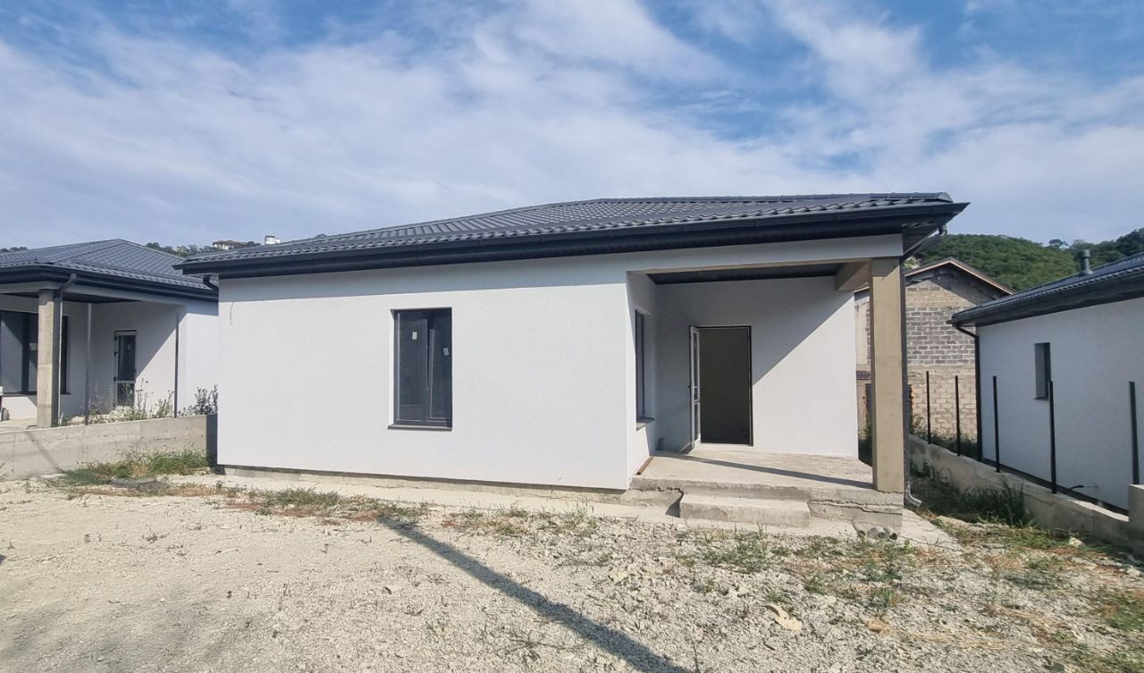 Дом был построен 2024 г., абсолютно современный проект из монолитного бетона, полностью с внутренней предчистовой (отшпаклеваны стены) и внешней отделкой, натяжные потолки во всех комнатах, крыша метало-черепица, металлопластиковые окна и двери, высота от пола до потолков 3 м., из окон открывается красивый вид на горы.