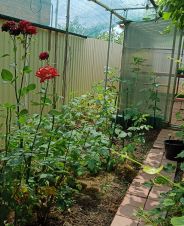 Во дворе есть навес, помещаются 3 автомобиля. Есть уличный душ, небольшая теплица.