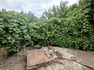 Из хоз.построек: два помещения свободного функционала, сарай, погреб, летний душ, уличная колонка для полива, уличные удобства. Канализация - септик. Ухоженный земельный участок о.п. 23,7 сотки, с плодовыми деревьями и кустарниками, есть виноград. Свободная территория двора забетонирована. Железный забор, ширина фасада 23,98 м.. Перед двором есть место для стоянки автомобилей.