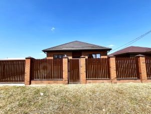 Участок огорожен по периметру забором, с фасадной стороны — евроштакетник, откатные ворота, калитка.