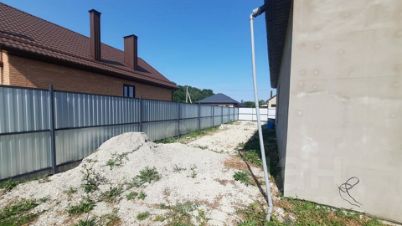 Забор вкруг, ворота откатные.