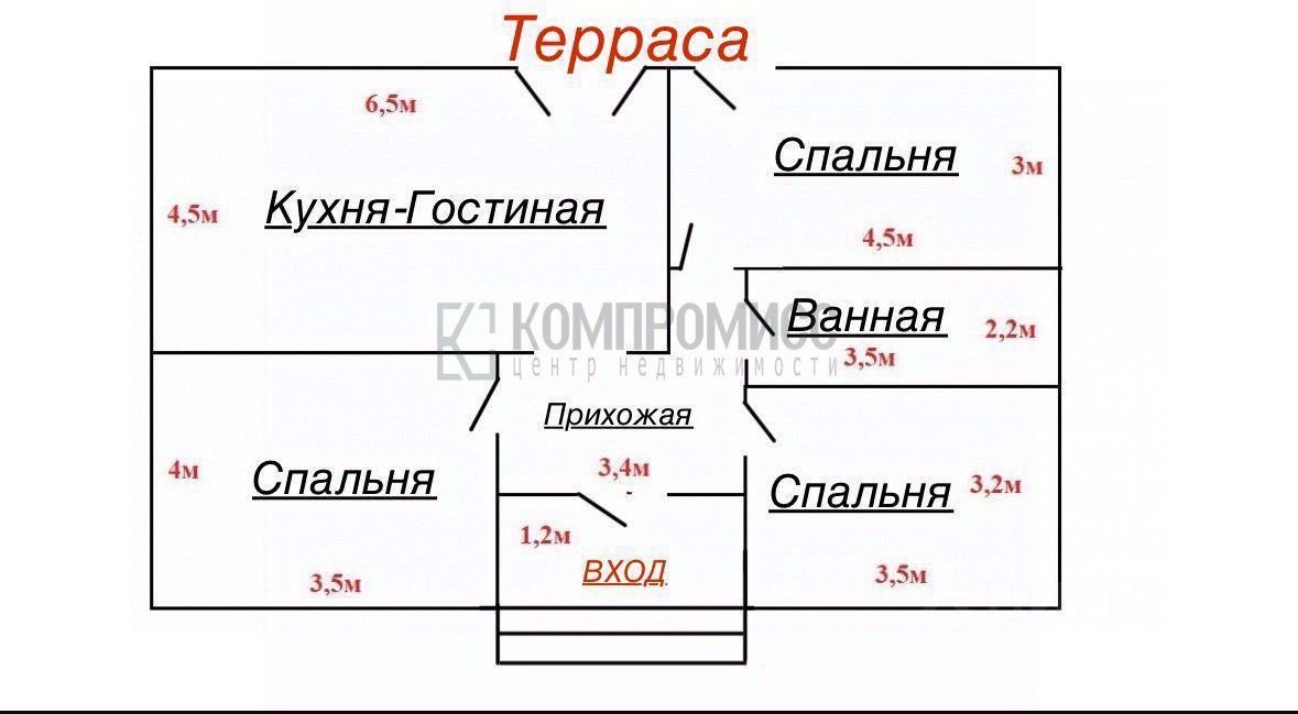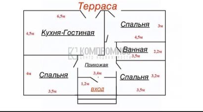 Три просторные комнаты, одна из которых имеет выход на террасу, создавая уютное пространство для отдыха.