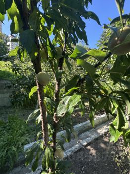 На участке растёт: груша, яблоня, хурма, персик, слива, чернослив, виноград, черешня, 2 хурмы.