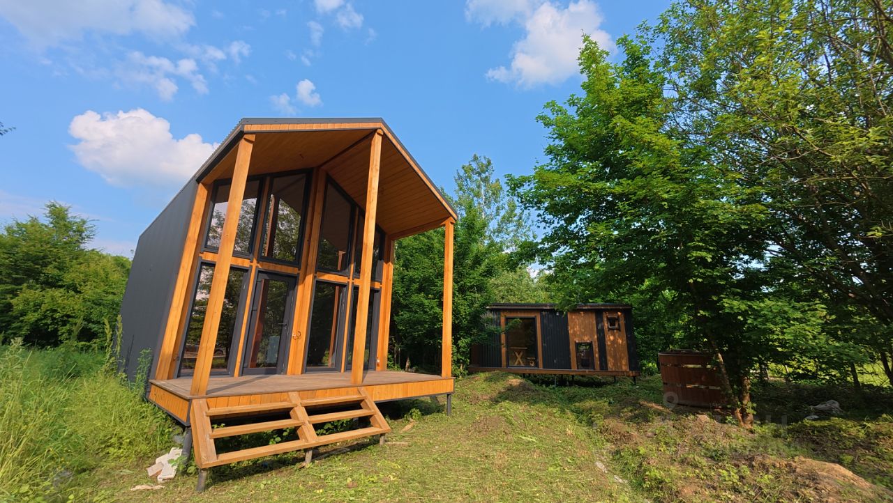 В доме (50 кв м) : второй свет (комната с окном, это как второй этаж открытого типа), общий зал-кухня с панорамной небольшой печью (которая служит отоплением в холода и для эстетики, так же можете установить электрические радиаторы или над лестницей есть вывод под сплит систему, можно греться разными вариантами;), отдельная спальня с большим окном , сан узел.