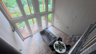 На участке 10 соток расположены: дом в стиле барнхаус, баня, купель, септик, скважина, выполнен дренаж (отведение воды).