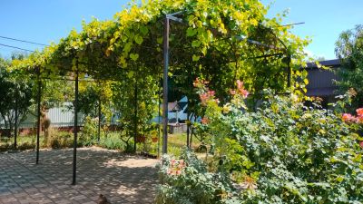 В саду плодоносят слива, черешня, персики, абрикос, нектарины, жердева, хурма, вишня, слива, 8 сортов винограда, малина, клубника, множество красивейших роз, декоративных растений.