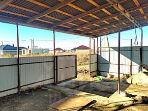 Перед домом имеется навес для автомобиля, а позади дома расположены капитальные хозяйственные постройки, теплица и свободное пространство для выращивания овощей и ягод.
