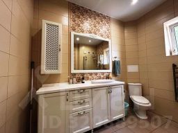 Весь интерьер выдержан в светлых, пастельных тонах, дорогие строительные и отделочные материалы, дорогая мебель и техника и сантехника.