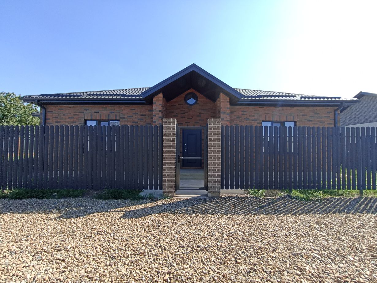 Дом огорожен забором с калиткой и откатными воротами. Также забетонированы дорожки к дому, парковочное место под авто и отмостка вокруг дома.
