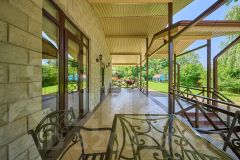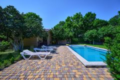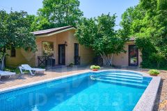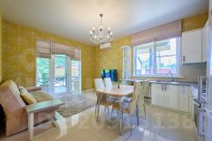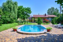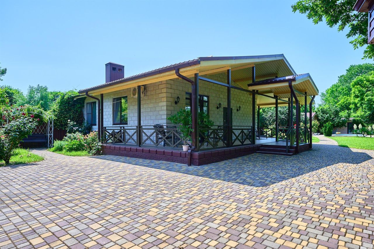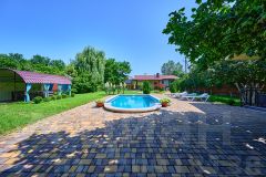 На территории есть зонирование: беседка, шезлонги, гамак, мангал, баня (финская сауна), большой бассейн с вечерней подсветкой. Домашний уют создает декоративное озеленение участка.