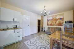 На территории ( 12соток) два кирпичных дома. Один дом ( 42.3м2) с кухней одной спальней и санузлом. Второй дом (127.7м2) с большой кухней - гостиной (27м2), тремя спальнями , отдельным санузлом.