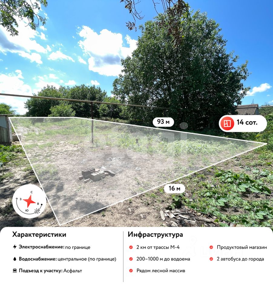 Инфраструктура развита: в шаговой доступности школа, детский сад, магазин "Пятерочка" и другие объекты первой необходимости. При этом местность сохраняет спокойную атмосферу загородной жизни. Удобное расположение позволяет быстро добраться до побережья: Азовское море находится в 25 минутах езды на автомобиле, Черное — в 50 минутах, что делает участок привлекательным для тех, кто ценит близость к морю без проживания в шумных курортных зонах.
