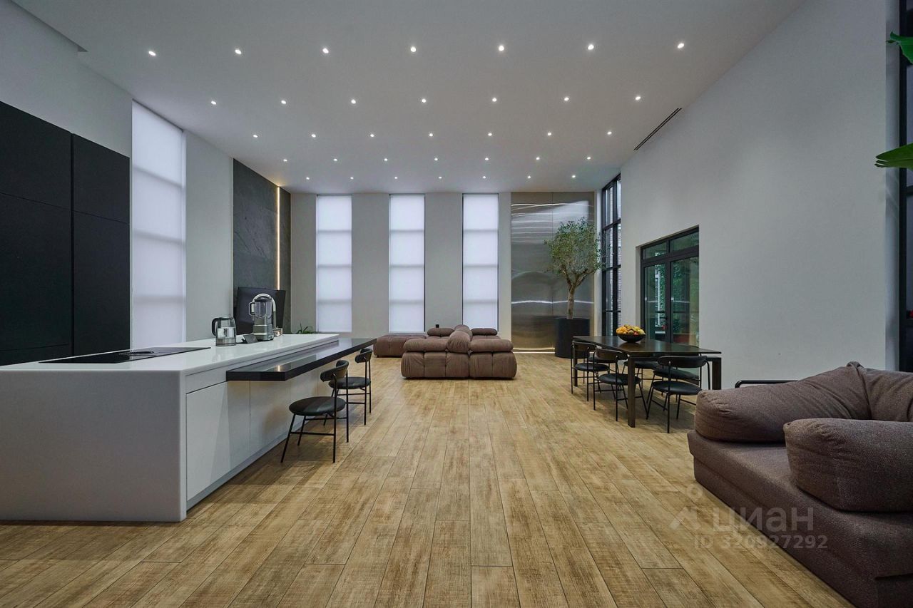 В доме на трех уровнях расположены хозяйская мастер-спальня, детские комнаты, гостевая мастер-комната и комната для персонала, огромная гостиная 75 кв метров с зоной кухни на первом уровне с высокими потолками, прачечная, помещение для элементов управления системами отопления и вентиляции.