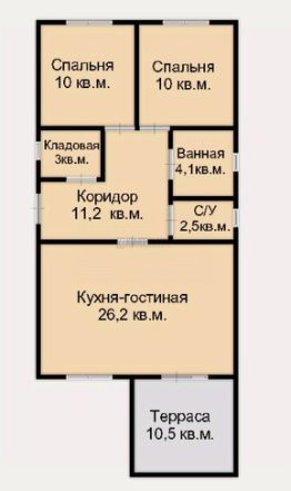 В доме: две изолированные спальни , кухня с выходом на террасу, раздельный санузел, кладовая, коридор.