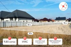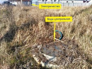 Участок правильной прямоугольной формы имеет размеры по фасаду 19 метров, в глубину 50 метров. Участок не подтапливаемый. На участок заведена центральная вода, Электричество - установлен столб и электросчетчик, Газ подведен к участку, Канализация септик - выкопан котлован.