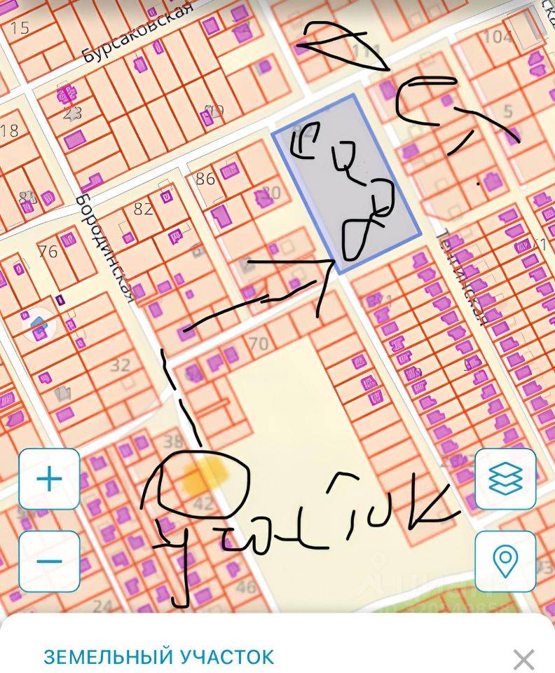 Участок ровной формы, я - один собственник (продажа напрямую), активно идет вокруг застройка, в паре улиц возводится муниципальный детский садик, рядом коттеджный поселок, электричество по меже , газ в паре кварталов - можно подавать заявку на газификацию. По новому генплану зона Ж1.