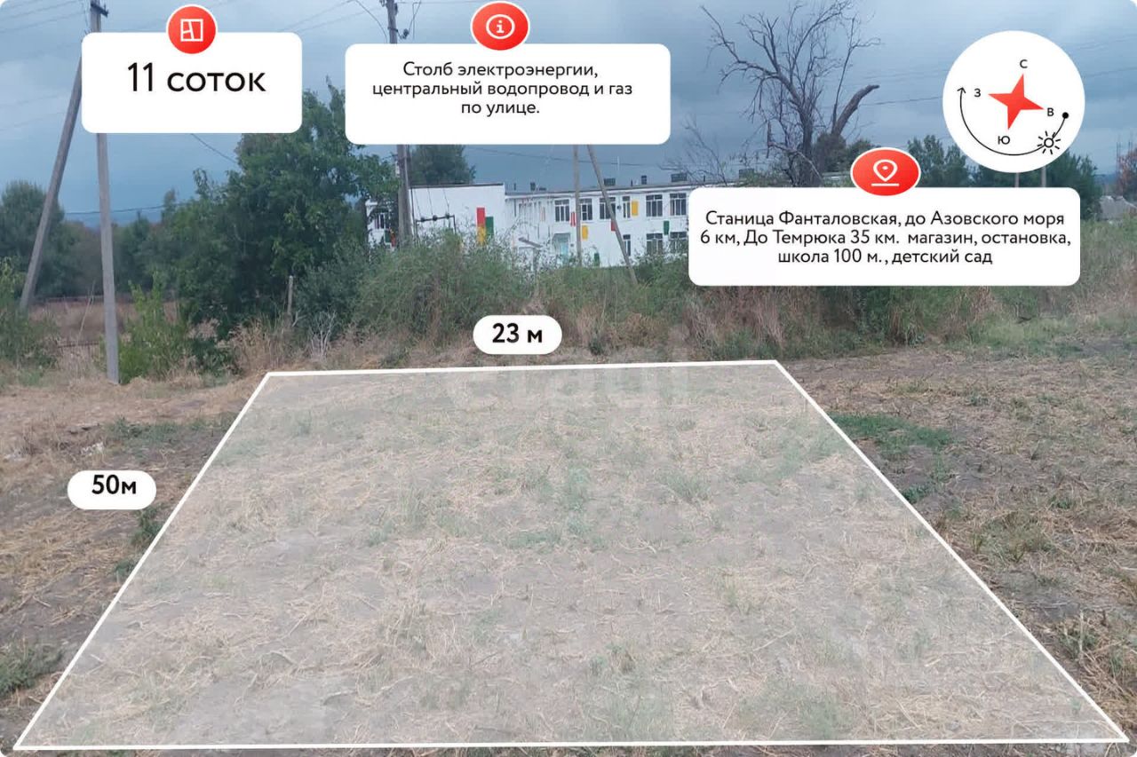 В станице Фонталовской Темрюкского района продается земельный участок площадью 11 соток.