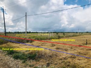 Коммуникации: По улице, с фасада участка проходит линии центральной газификации и водоснабжения. Столб электроснабжения рядом с участком.