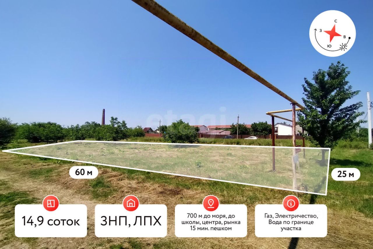 Продается земельный участок со всеми коммуникациями всего в 700 м от Азовского моря, в курортном поселке Кучугуры.