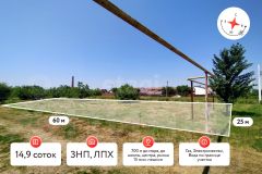 Площадь участка 14,9 сот. По фасаду - 25 м, в глубину - 60м.