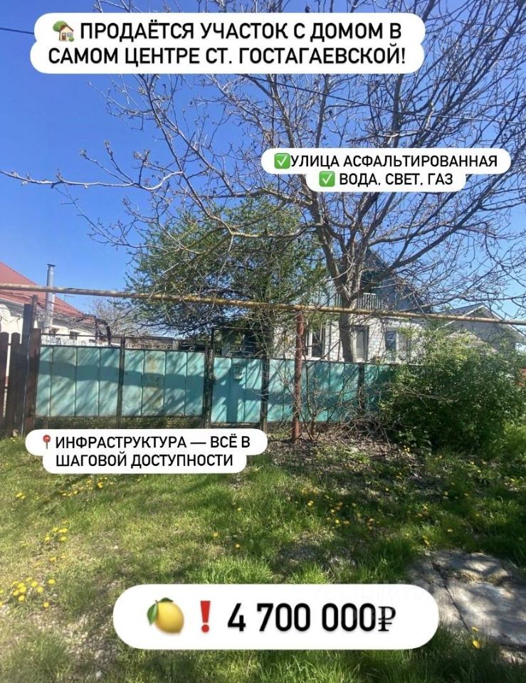 Продажа участка с жилым домом в центре ст. Гостагаевской!