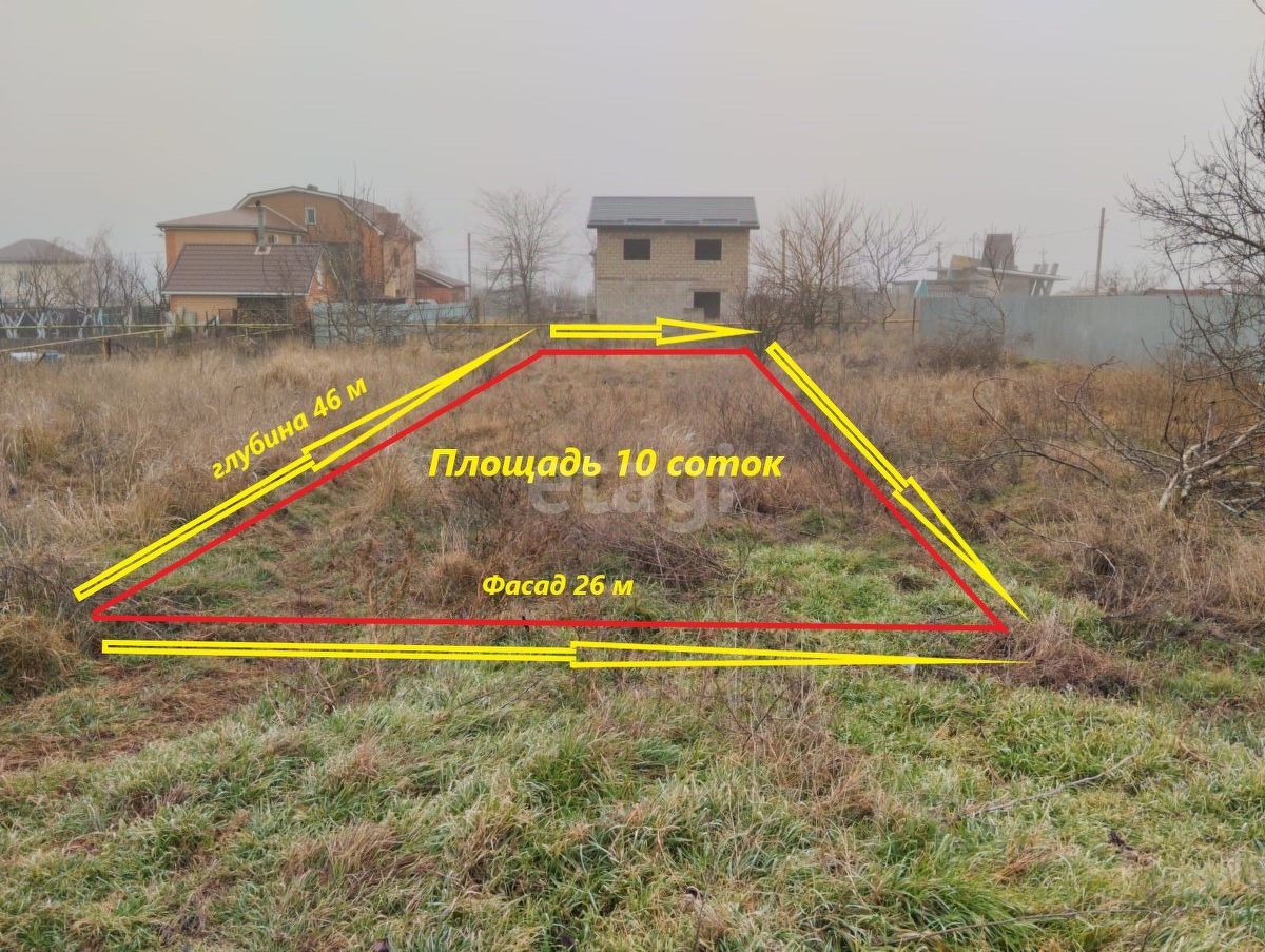 Продается земельный участок в курортной станице Голубицкая Темрюкского района. Земельный участок общей площадью 10 соток, прямоугольной формы, фасад - 26 метров, глубина - 41 метр.