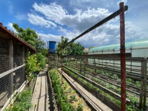 На придомовой территории площадью 16 соток расположена газифицированная летняя кухня, навес-беседка, летний туалет и душ , теплица , подвал а также сад с фруктовыми деревьями - черешней, абрикосом, персиками ,груша, сливой, кустарниками крыжовник ,малина ,смородина а так же виноградом разных сортов.