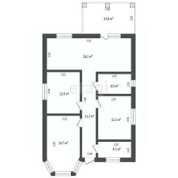 • Три изолированные спальни (14.7 м², 12.5 м², 12.1 м²)