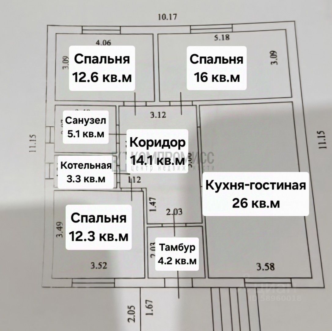 3 спальни, кухня-гостиная с выходом на участок, два санузла, один из которых располагается в котельной, просторный коридор и тамбур;