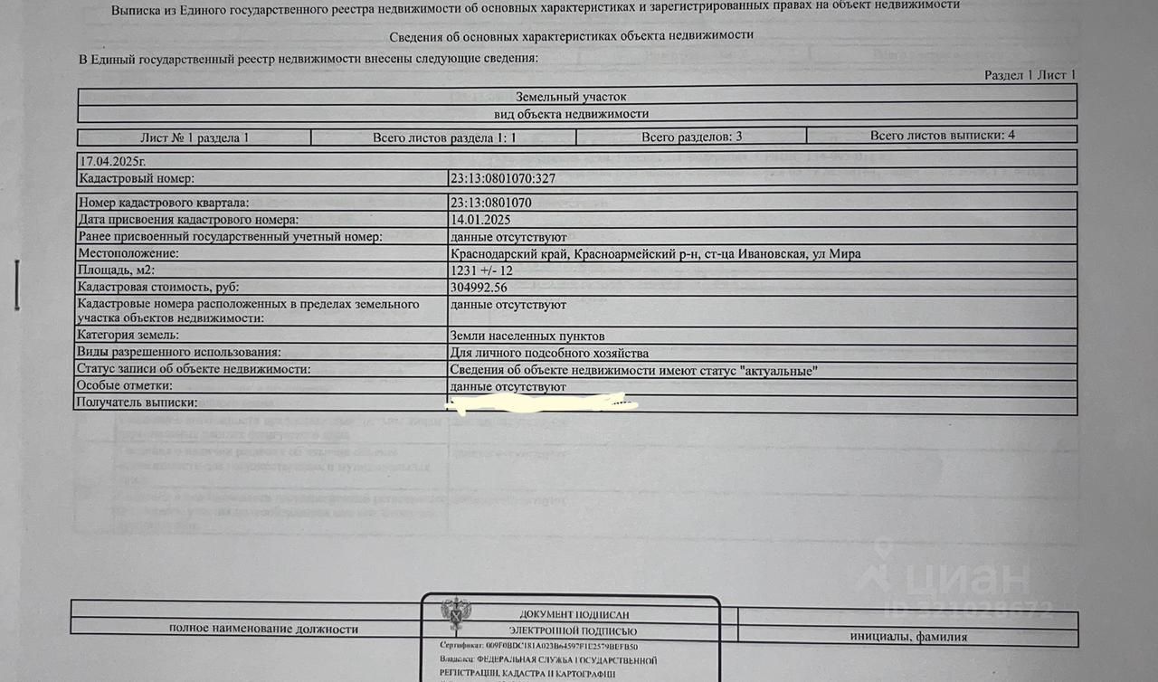 Земельный участок расположен в тихом месте. Участок расположен на возвышенности, не подтопляется. Рядом с участком проходит свет, вода,присвоен адрес. На соседней улице расположен газ, в будущем планируется проведение газа. Рядом расположен лиман. Недалеко расположен центр станицы с магазинами, поликлиникой, детским садом и школой.