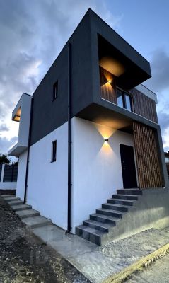 Современный дом в стиле Хай-Тек всего в 5 минутах от Анапы и Черного моря. Отличный вариант для семьи — просторные комнаты, удобная планировка и функциональный холл для отдыха, кабинета или игровой зоны.