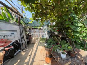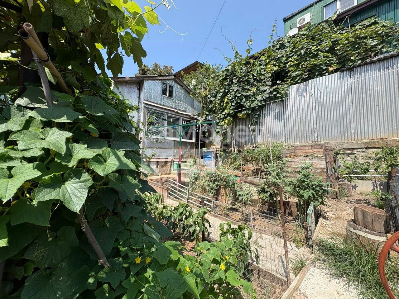 Участок угловой, что обеспечивает удобный подъезд к дому по асфальтированной дороге с двух улиц. На участке растут плодовые деревья, есть навес и гараж.