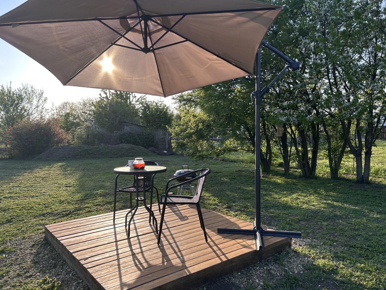 На участке есть деревья:вишня, черешня, абрикос, слива, алыча. Зона барбекю и отдыха с зонтом (веранда).