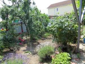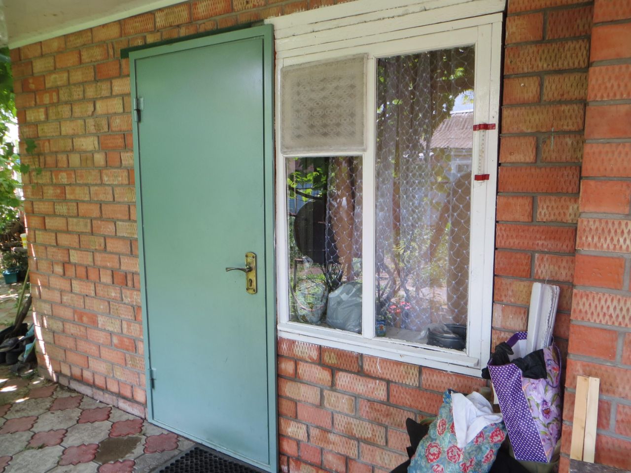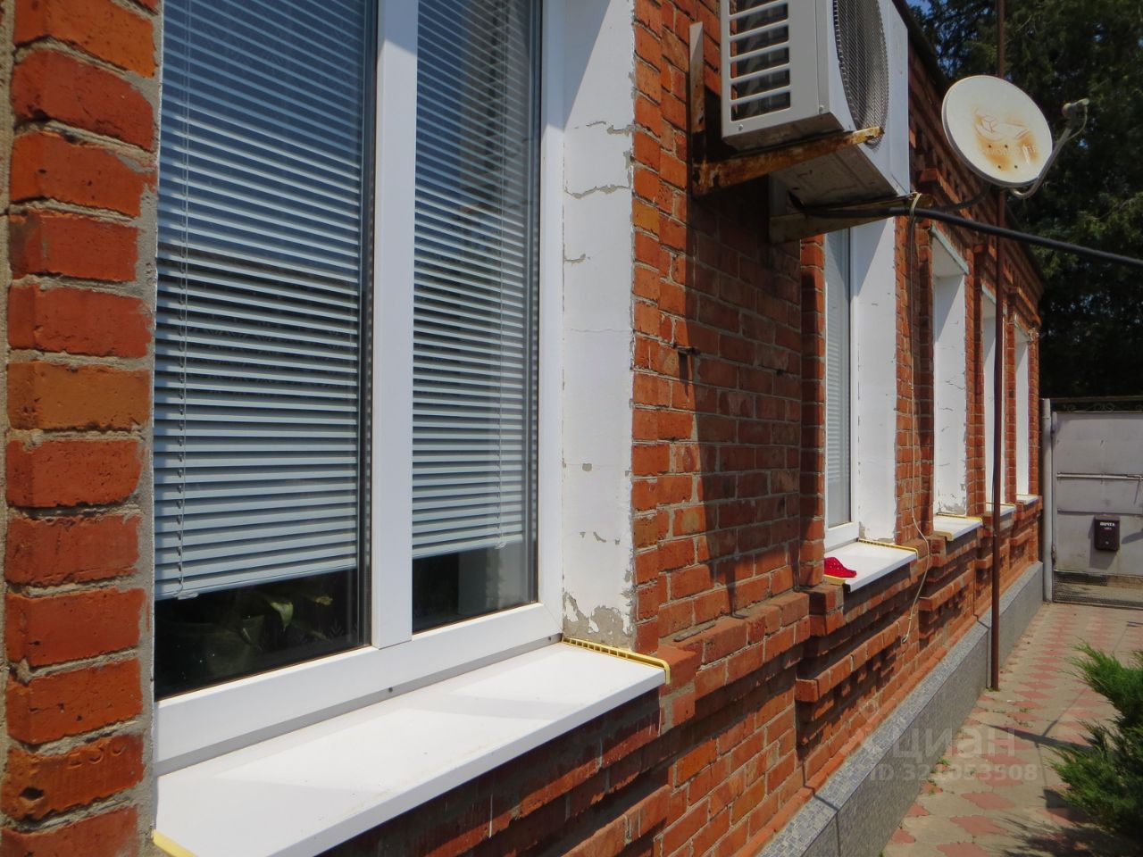 ___ Въезд, двор плитка, участок - 5 соток. Другие постройки: есть спутниковая антенна; времянка; гараж; навес; подвал; сарай; летние душ и туалет. Сад. Много винограда. На окнах жалюзи.
