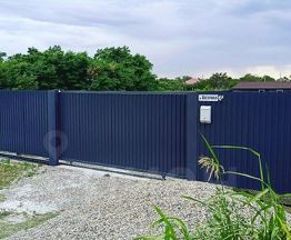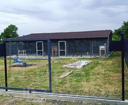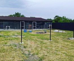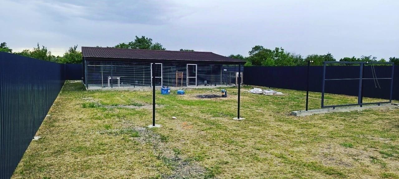 Участок огорожен забором серый графит. На учатке имеется постройка (120 кв. м (ширина 9 м, длина 12 м), капитальный туалет. По периметру залиты трубы под забор.