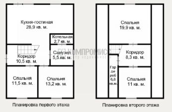 На мансардном этаже площадью 46 кв.м.: две спальни, гардероб, коридор (можно выделить зону под санузел, трубы канализации выведены).