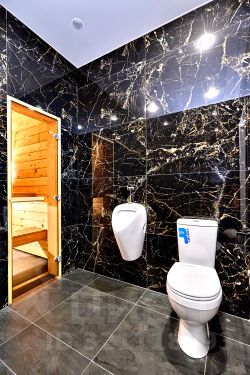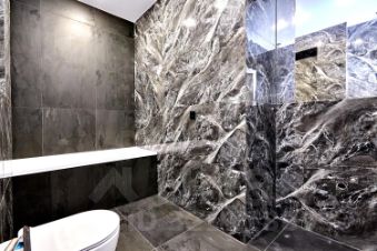 * Современной ванной: керамогранит, сантехника с инсталляцией, тропический душ — всё для вашего комфорта.