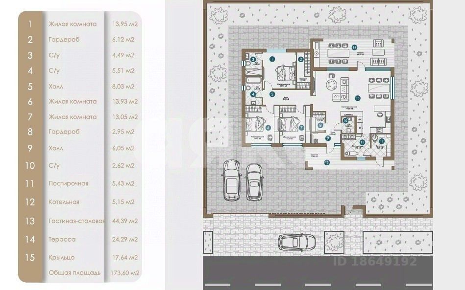 В доме 3 спальные комнаты, большая кухня-гостиная, 3 сан. узла, потолки 3,1 м,