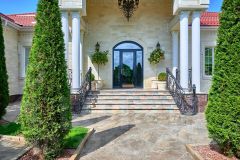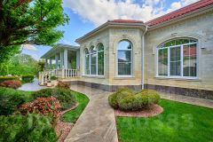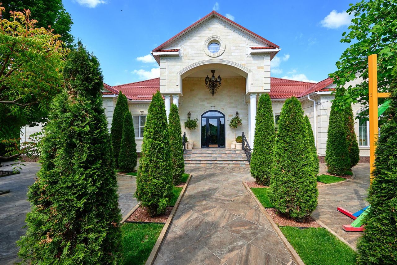Дом в стиле неоклассика — статус, комфорт и безупречная архитектура. Построен из кирпича, с фасадом из дагестанского камня, широким фасадной частью и продуманными акцентами.