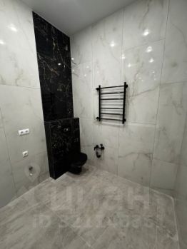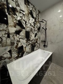 - В санузле чугунная ванна длиной 2 метра, итальянская душевая система, подвесной унитаз (инсталляция), пол и стены керамогранит и керамическая плитка.