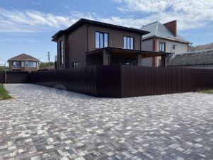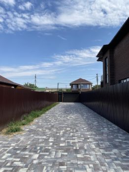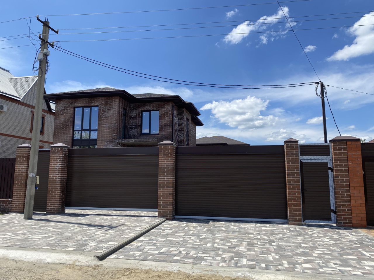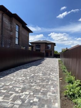 Дома построены полностью из кирпича с утеплителем, мягкая кровля, двор выкладываем тротуарной плиткой, установлены автоматические ворота (рольставни)