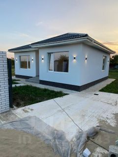 Дом построен из керамзитного блока и утеплен пеноплексом, отделан фасадной плиткой. Имеется отмостка по всему периметру. Участок полностью расчищен, без каких-либо насаждений и огорожен забором из профильного листа на ленточном фундаменте. Фасадная часть забора из евро штакетника, с колоннами из кирпича, с подсветкой входной и въездной группой. Ворота откатные, с возможностью подключения электропривода.
