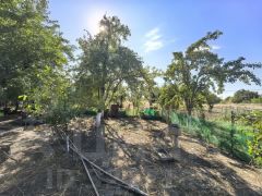 На участке есть летний домик, баня, с подведенной водой и дополнительно установленным бойлером для нагрева воды, гараж с ямой, хоз.постройки для домашней птицы, навес для генератора и инструмента, вольер для собак, летний душ, туалет. Высажен фруктовый сад, виноград, орехи. Огород оснащен системой микрополива.