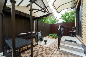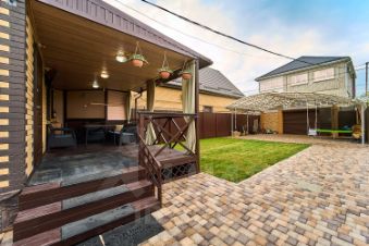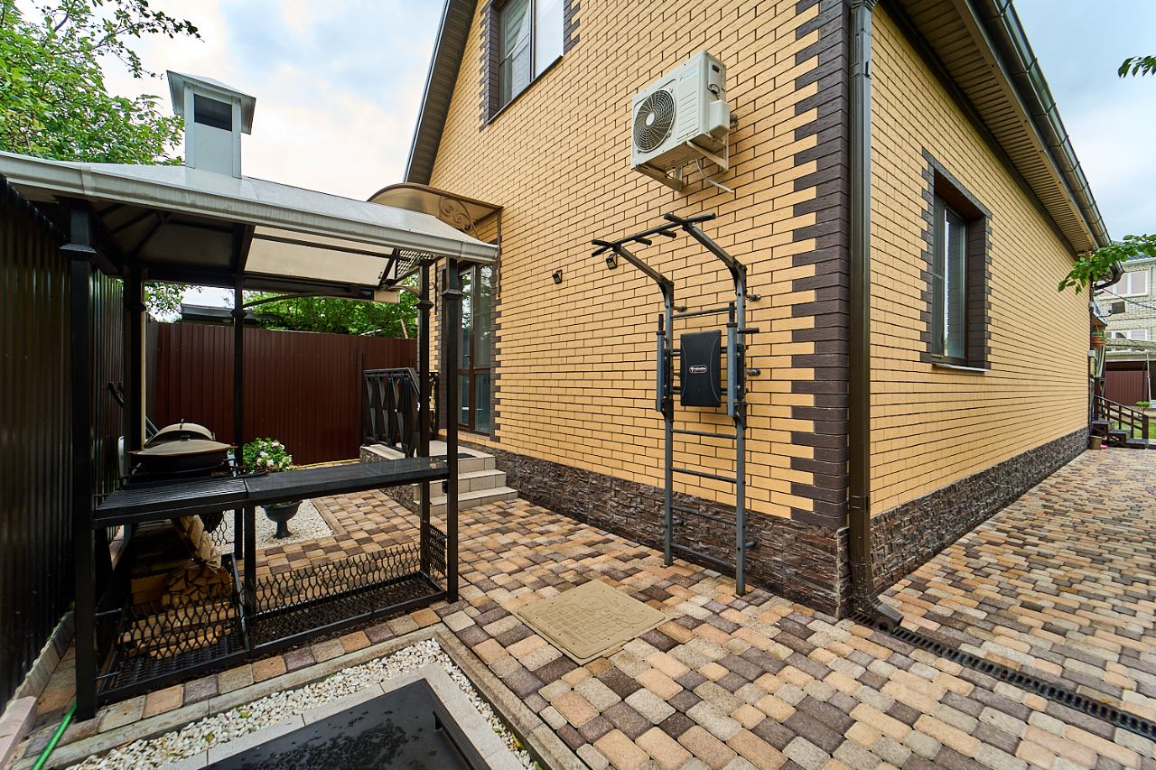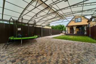 Автомaтичeскиe воpотa, видeoдoмoфон, видеoнaблюдeниe по пеpимeтру двopа и нa ворoтaх (управление со смартфона). Все сливы у дома выведены в индивидуальные септики, поэтому во дворе нет никакой лишней влаги.