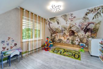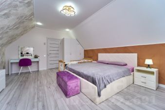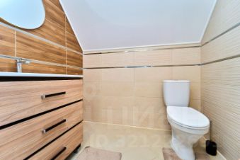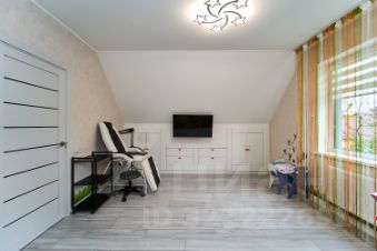 На втором этаже в детской встроены шкафы, два распашных с полочкой и 4 ящика, что очень удобно разложить все вещи и не занять место громоздким шкафом. На втором этаже находится второй дополнительный санузел. В спальне остается кровать, шкаф (делали на заказ), тумбочка и туалетный столик со стулом и гримерным зеркалом.