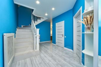 В каждой комнате, кроме детской установлены сплиты. В гостиной и спальне сделаны декоративные гипсовые панели. Лестница из керамогранита и деревянные перила, которые изготавливали по индивидуальному дизайну. Шкаф в коридоре сделан под заказ и остается в доме, поэтому почти все у вас будет индивидуальное.