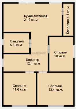 В доме 3 изолированные комнаты, кухня, коридор, сан.узел, кладовая.