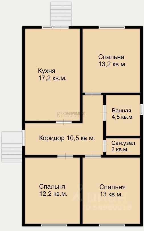 В доме 3 изолированные комнаты, кухня, коридор, сан. узел.